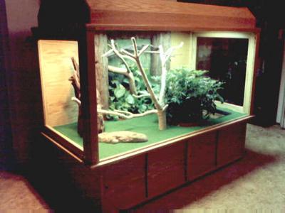 佈置: 墊底物料可用泥土、苔蘚、草苔、木塊、樹皮、椰磚等,或混合使用。同時在墊底物料下加一塊過濾層板,可幫助清潔及防止底材過濕。可用沉木、草苔、石頭與植物裝飾,同時讓動物棲息及增加安全感。植物可直接種植或插在墊底物料中。植物的種類、大小及形狀均需配合品種的棲息須求及飼養箱的大小。